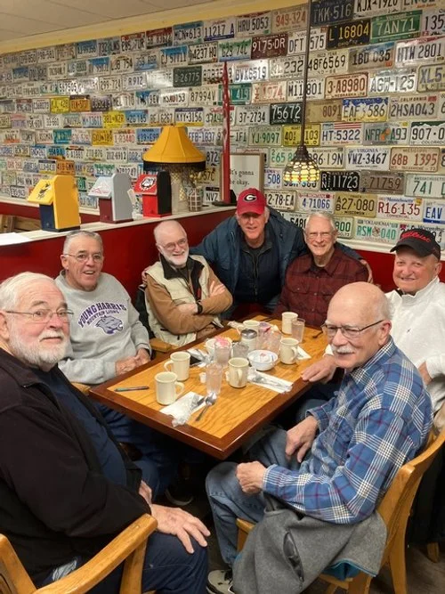The Sharp Men meet each Wednesday morning at 7:30 AM at Mary's Southern Grill in Young Harris for a prayer breakfast meeting which includes a devotional.